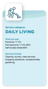 Designed to help you manage daily tasks, this category covers services such as personal care (showering and dressing), social engagement, transport, and in-home respite (temporary care at home to give carers a break). There may be costs associated with services in this category.
