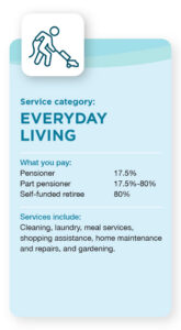 Designed to help you manage daily tasks, this category covers services such as personal care (showering and dressing), social engagement, transport, and in-home respite (temporary care at home to give carers a break).  There may be costs associated with services in this category.
